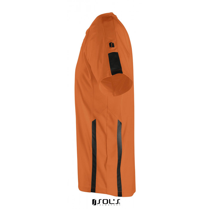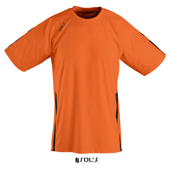 Детская футболка с коротким рукавом SOL’S WEMBLEY KIDS SSL. Модель с круглым воротом и рукавом реглан снабжена перфорированными вставками спереди, на спине и на рукавах. Задний край закруглен и слегка удлинен. Вышитый контрастной нитью логотип. Материал: Интерлок, полиэстер 100%. Удельный вес: 140 г/кв.м.