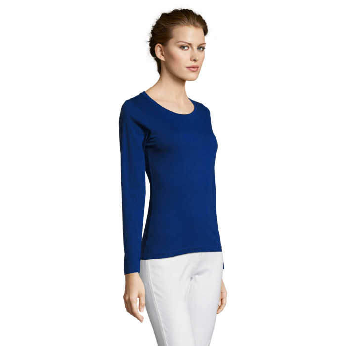Футболка женская с круглым воротом и длинным рукавом SOL’S MAJESTIC. Стиль: классический, глубокий вырез -приталенная модель, манжеты без резинки; изделие выкроено из трикотажного полотна. Материал: ДЖЕРСИ 150. Полугребенной 100% хлопок, укрепляющая тесьма по вороту, край круглого ворота связан резинкой с эластаном. Вариант для мужчин: MONARCH-11420