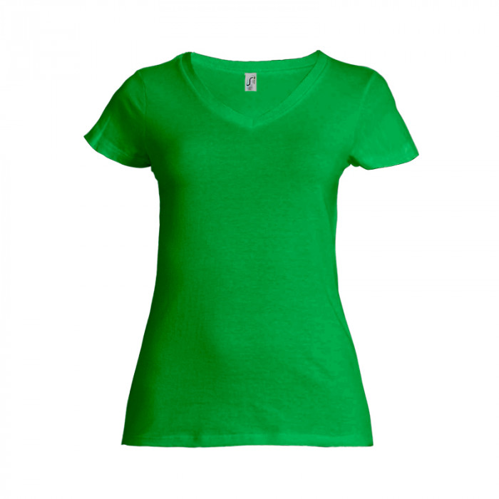 Футболка с v-образным вырезом; Полугребенной 100% хлопок,отделка линии горловины в тонкую резинку; Облегающая модель,короткие рукава,изделие выкроено из трикотажного полотна