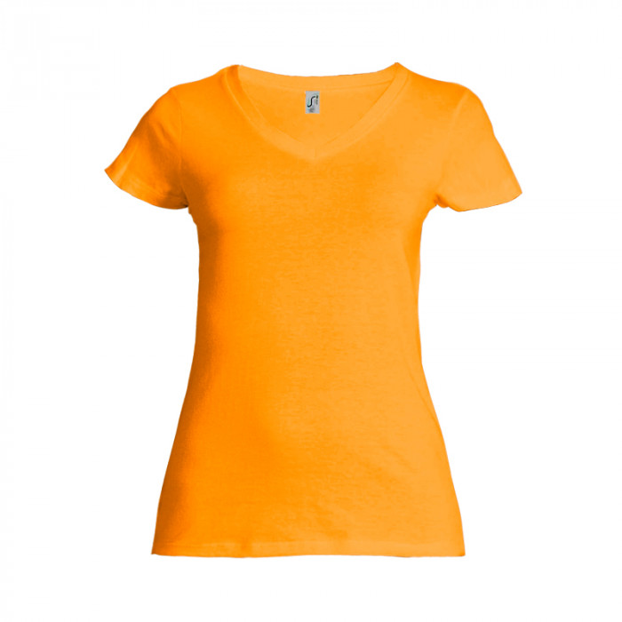 Футболка с v-образным вырезом; Полугребенной 100% хлопок,отделка линии горловины в тонкую резинку; Облегающая модель,короткие рукава,изделие выкроено из трикотажного полотна