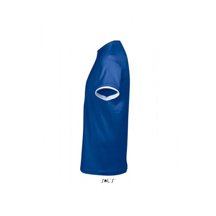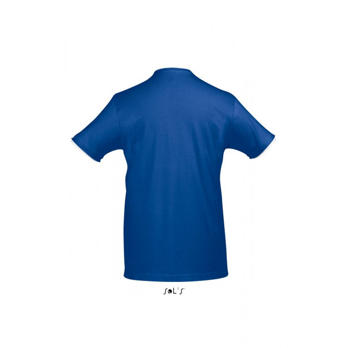 Футболка, с отделкой в виде закручивающихся неподрубленных краев. Полугребенной 100% хлопок,укрепляющая тесьма по вороту.