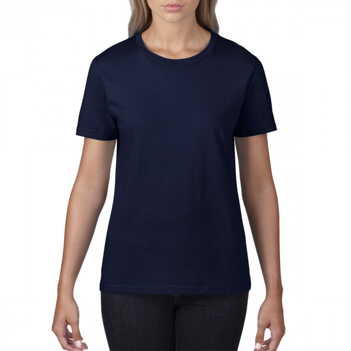 Футболка жіноча з круглою горловиною. Щільність - 185 г/м.кв., біла - 180 г/м.кв Матеріал - джерсі (одноколірні - 100% бавовна). Кольорова гама - 11 відтінків. Без бокових швів. Фасон - прямий, європейський стиль. Укріплююча тасьма від плеча до плеча. Подвійний плечовий шов, подвійна строчка на горловині. Горловина - рібана (резинка) висотою 1,9 см, виглядає на футболці дуже гармонічно. Не змінює колір та не "сідає" у процесі носіння та прання. Бірка з перфорацією, за потреби можна відірвати. Варіант для жінок - арт. 4100L.