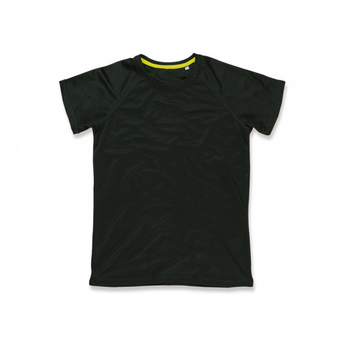 Бічні вставки, вшиті рукава. Еластичний матеріал, декоративна відстрочка, контрастна обробка горловини (CBY), маленька бірка з розміром з боку спини, етикетка з вказівками по догляду в бічному шві. 100% ACTIVE DRY поліестер.