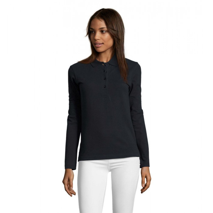 Рубашка поло женская с длинным рукавом SOL’S PODIUM. Стиль: женственный. Планка ворота с 4 пуговицами в тон - приталенный крой, боковые разрезы, изделие выкроено из трикотажного полотна. Материал: ТРИКОТАЖ ПИКЕ 210. Гребенной 100% хлопок, воротник в резинку, укрепляющая тесьма по вороту. Вариант для мужчин: WINTER-11350