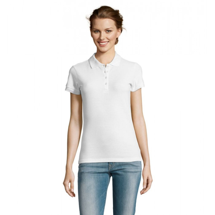 Рубашка поло женская SOL’S PEOPLE. Стиль: женственный. Облегающая модель, планка воротника с 4 пуговицами в тон, низ изделия прямой с боковыми разрезами, изделие выкроено из трикотажного полотна. Материал: ТРИКОТАЖ ПИКЕ 210. Гребенной 100% хлопок, воротник и рукава в резинку - укрепляющая тесьма по вороту. Вариант для мужчин : SPRING II-11362