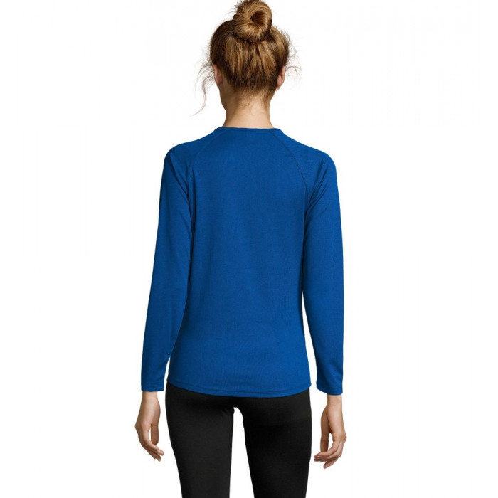 Женская спортивная футболка с длинным рукавом SPORTY LSL WOMEN. Круглый вырез. Кроеный трикотаж. Приталенная модель. Горловина обработана бейкой. 100% воздухопроницаемый («дышащий») полиэстер Mesh 140 г/м². Мужская версия - арт.02071 SPORTY LSL MEN.