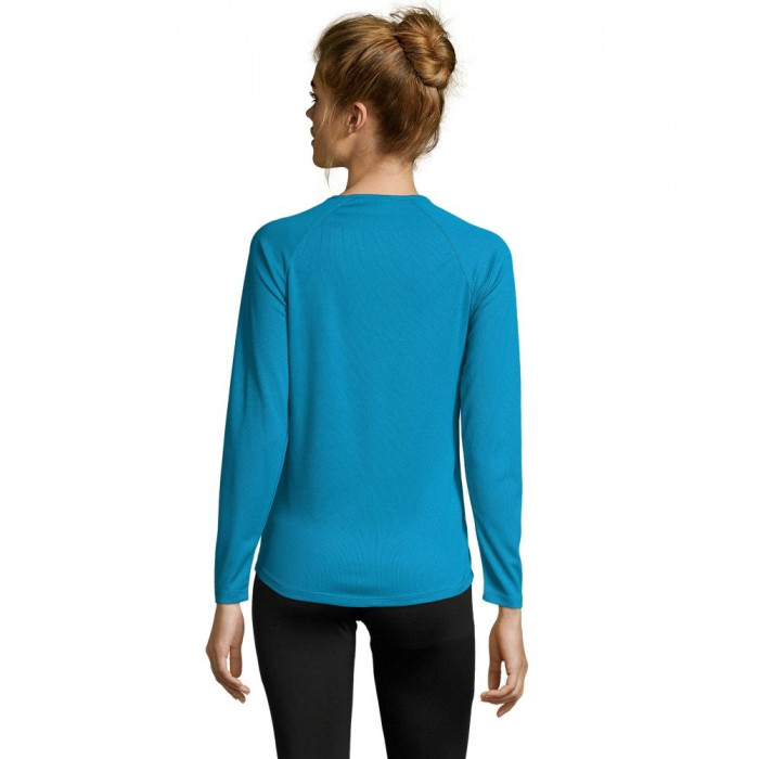 Женская спортивная футболка с длинным рукавом SPORTY LSL WOMEN. Круглый вырез. Кроеный трикотаж. Приталенная модель. Горловина обработана бейкой. 100% воздухопроницаемый («дышащий») полиэстер Mesh 140 г/м². Мужская версия - арт.02071 SPORTY LSL MEN.