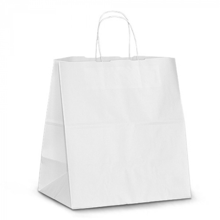 Крафт-пакет 32x19x34 белый с витыми ручками "на вынос"