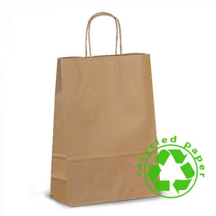 Бумажные пакеты 23х10х32 с переработанного сырья с витыми ручками.