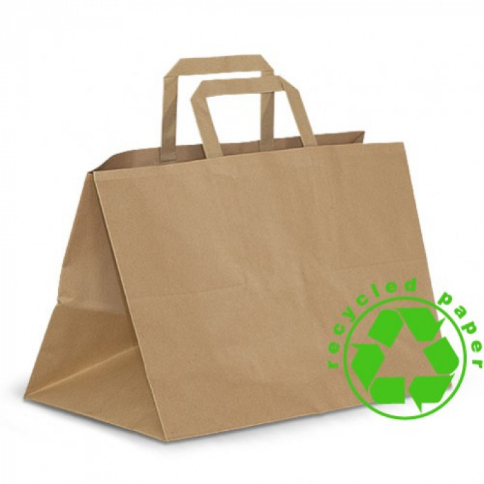 Бумажные пакеты 35х23х25 с переработанного сырья с плоскими ручками "на вынос".