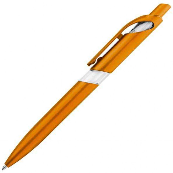 Пластиковая шариковая ручка с прозрачной вставкой. Различных цветов на выбор.
