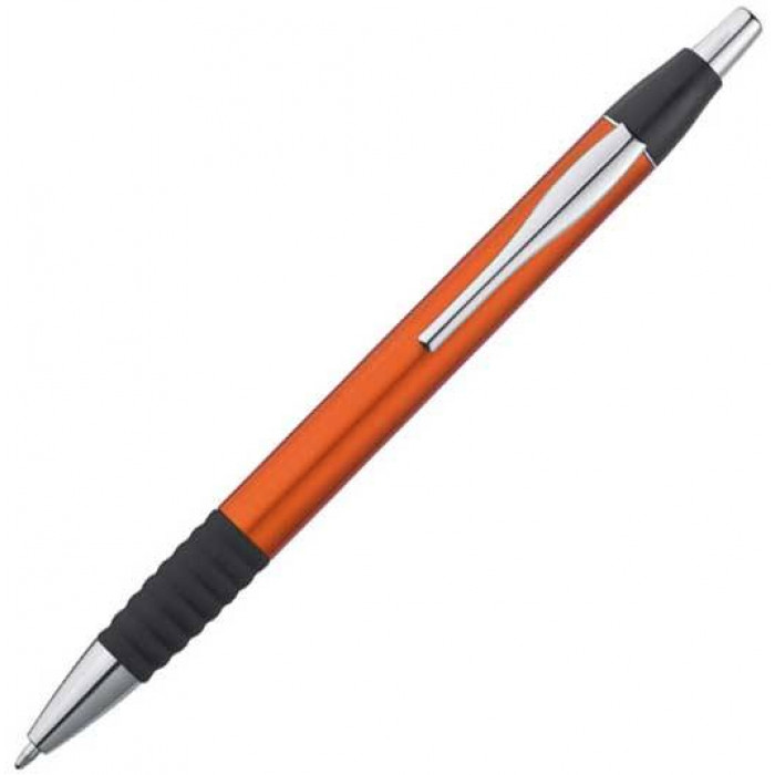 Пластиковая ручка с удобной для руки резинкой. Пишет синими чернилами