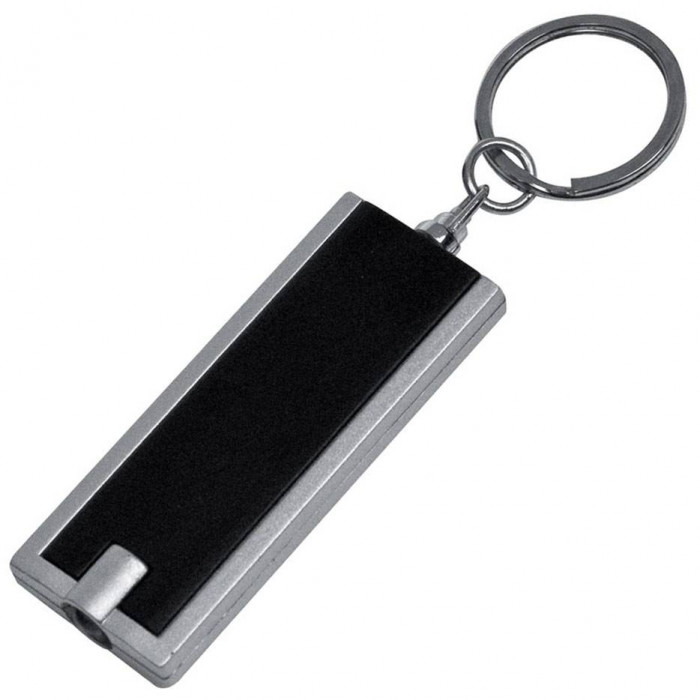 Пластиковый брелок для ключей с лампочкой LED. В комплекте 2 батарейки. Упакован в отдельную картонную упаковку. Группа нанесения: T3.