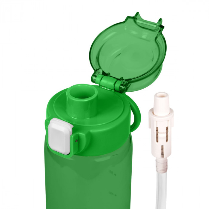 Пляшка для пиття зі з’ємною трубочкою Матеріал тритан, кришка з надійним відкидним механізмом який блокується, має ручку для зручного тримання. Завдяки з’ємній трубочці, ви можете обирати спосіб пиття. Ідеально підходить для щоденного використання, занять спортом або подорожей.