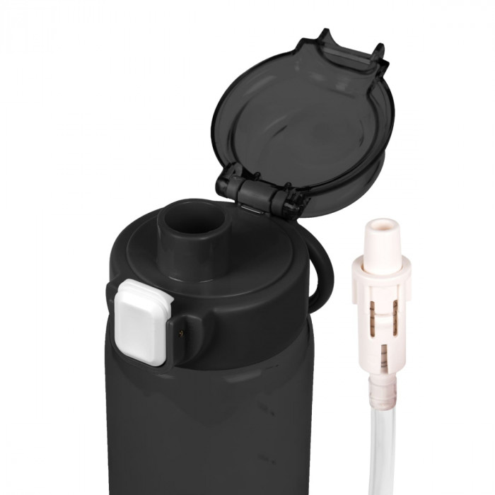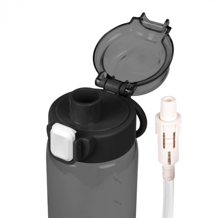 Пляшка для пиття зі з’ємною трубочкою Матеріал тритан, кришка з надійним відкидним механізмом який блокується, має ручку для зручного тримання. Завдяки з’ємній трубочці, ви можете обирати спосіб пиття. Ідеально підходить для щоденного використання, занять спортом або подорожей.