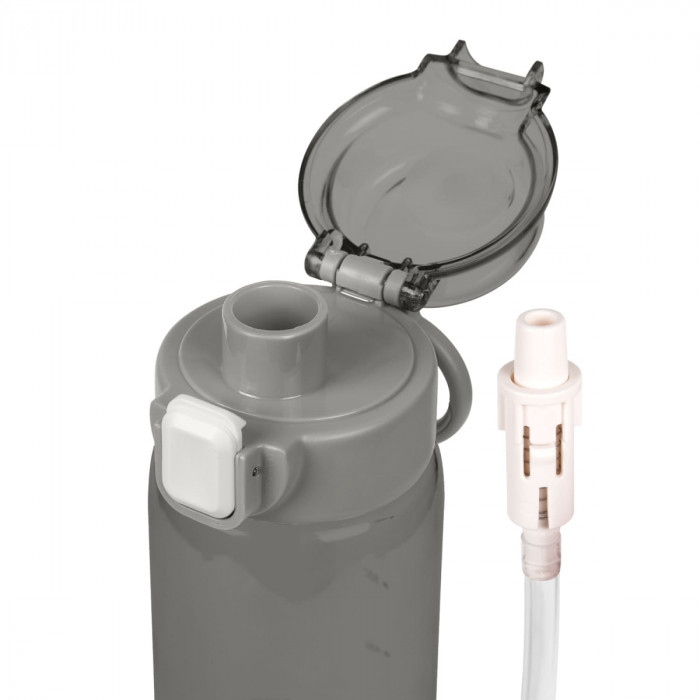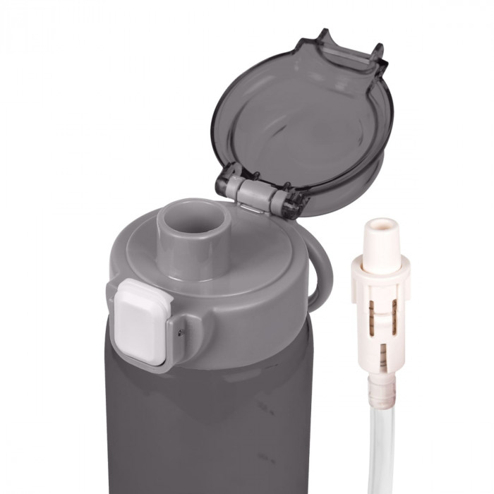Пляшка для пиття зі з’ємною трубочкою Матеріал тритан, кришка з надійним відкидним механізмом який блокується, має ручку для зручного тримання. Завдяки з’ємній трубочці, ви можете обирати спосіб пиття. Ідеально підходить для щоденного використання, занять спортом або подорожей.