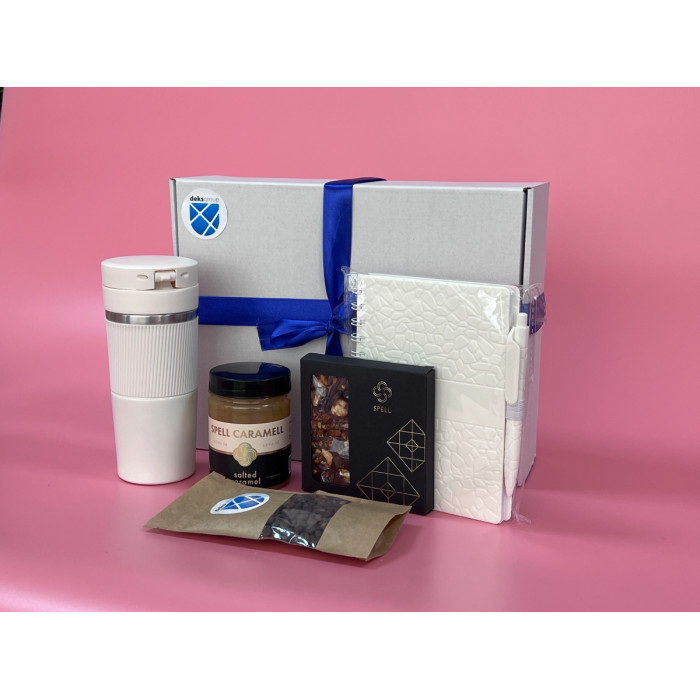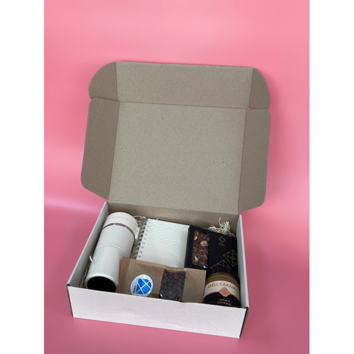 Ціна подарункового боксу орієнтовна і залежить від вибору товарів, методу брендування та кількості наборів. Елементи можна змінити за вашими вподобаннями або бюджетом, звернувшись до менеджера.