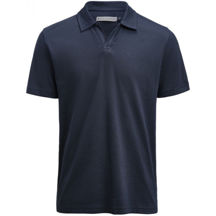 Поло чоловіче James Harvest Scarsdale Men – сучасна модель поло темно-синього кольору, яка поєднує комфорт, якість і елегантний зовнішній вигляд. Виготовлене з органічної довговолокнистої бавовни кільцевого прядіння і сертифікованого переробленого поліестеру, поло має приємну на дотик текстуру і добре тримає форму. Відкрита планка без ґудзиків і лаконічний комір створюють стильний мінімалістичний образ. Бічні розрізи забезпечують свободу рухів і гарну посадку по фігурі. Підходить для щоденного носіння та брендування.
