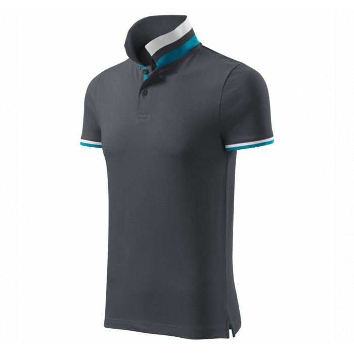 Матеріал: піке, 100% бавовна. Крій з бічними швами. Комір та рукави в’язані в рубчик 1:1. Нижня частина коміра і подолу рукавів з контрастними смугами. Планка на 2 ґудзиках кольору черепашка. Розрізи в бічних швах і нижня планка з контрастною стрічкою. Внутрішній виріз з контрастною стрічкою.