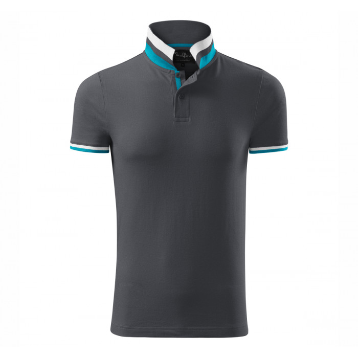 Матеріал: піке, 100% бавовна. Крій з бічними швами. Комір та рукави в’язані в рубчик 1:1. Нижня частина коміра і подолу рукавів з контрастними смугами. Планка на 2 ґудзиках кольору черепашка. Розрізи в бічних швах і нижня планка з контрастною стрічкою. Внутрішній виріз з контрастною стрічкою.