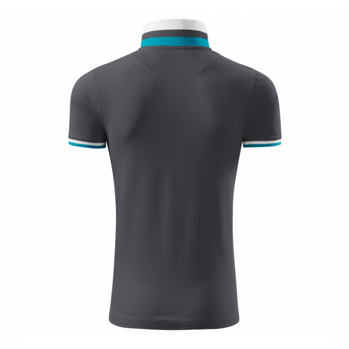 Матеріал: піке, 100% бавовна. Крій з бічними швами. Комір та рукави в’язані в рубчик 1:1. Нижня частина коміра і подолу рукавів з контрастними смугами. Планка на 2 ґудзиках кольору черепашка. Розрізи в бічних швах і нижня планка з контрастною стрічкою. Внутрішній виріз з контрастною стрічкою.