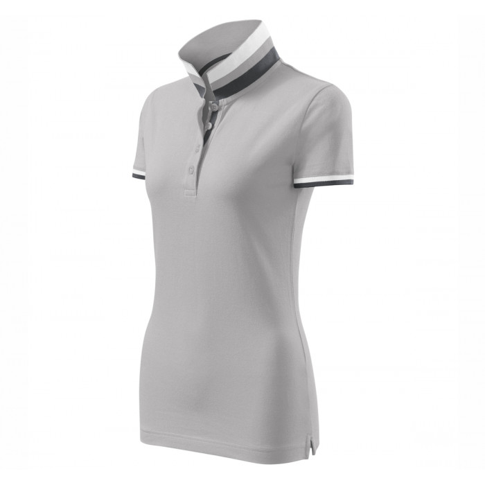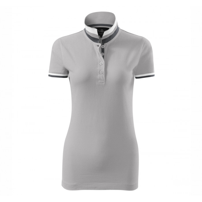 Матеріал: піке, 100% бавовна. Крій з бічними швами. Комір та рукави в’язані в рубчик 1:1. Нижня частина коміра і подолу рукавів з контрастними смугами. Планка на 2 ґудзиках кольору черепашка. Розрізи в бічних швах і нижня планка з контрастною стрічкою. Внутрішній виріз з контрастною стрічкою.