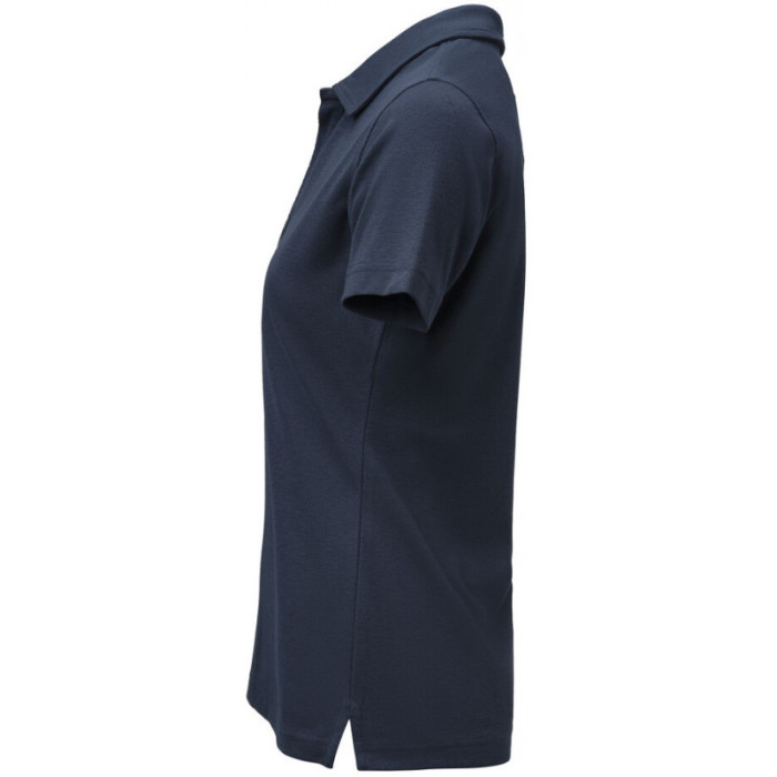 Поло жіноче James Harvest Scarsdale Woman – елегантна модель поло темно-синього кольору з акцентом на комфорт і сучасний вигляд. Матеріал із органічної бавовни та переробленого поліестеру має приємну щільність і довговічність. Відкрита планка без ґудзиків, елегантний комір і бічні розрізи формують лаконічний силует, що легко адаптується під різні стилі – від повсякденного до ділового. Ідеальне рішення для брендування або корпоративного стилю.