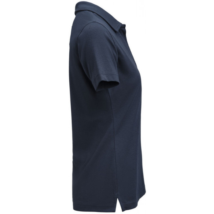 Поло жіноче James Harvest Scarsdale Woman – елегантна модель поло темно-синього кольору з акцентом на комфорт і сучасний вигляд. Матеріал із органічної бавовни та переробленого поліестеру має приємну щільність і довговічність. Відкрита планка без ґудзиків, елегантний комір і бічні розрізи формують лаконічний силует, що легко адаптується під різні стилі – від повсякденного до ділового. Ідеальне рішення для брендування або корпоративного стилю.