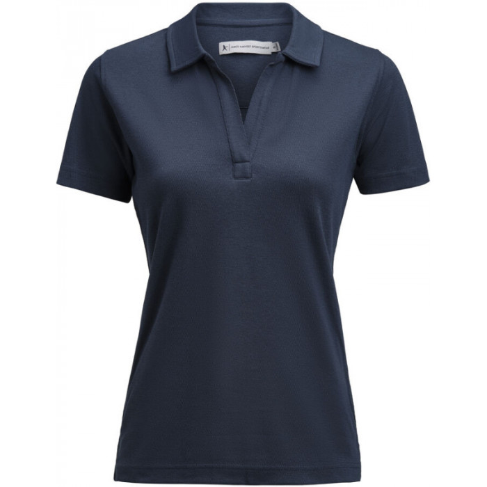 Поло жіноче James Harvest Scarsdale Woman – елегантна модель поло темно-синього кольору з акцентом на комфорт і сучасний вигляд. Матеріал із органічної бавовни та переробленого поліестеру має приємну щільність і довговічність. Відкрита планка без ґудзиків, елегантний комір і бічні розрізи формують лаконічний силует, що легко адаптується під різні стилі – від повсякденного до ділового. Ідеальне рішення для брендування або корпоративного стилю.