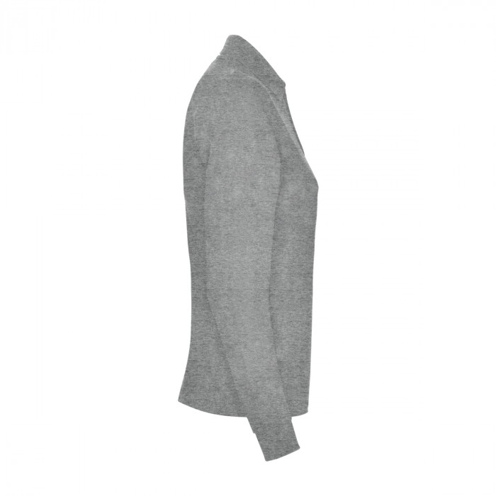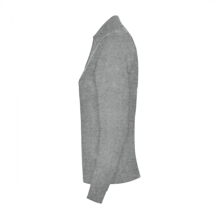 Поло жіноче з довгим рукавом Estrella з ребристим коміром і манжетами, планкою на 3 ґудзиках і ребристими манжетами з еластану. Посилені закриті шви на комірі. Матеріал: 100% бавовна, піке, 220 г/м². Сірий колір 58: 85% бавовна / 15% віскоза