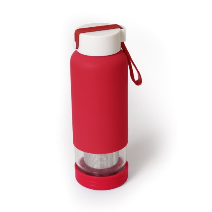 Бутылочка для напитков - стильный аксессуар, который удобно взять с собой в дорогу, на отдых или прогулку. Стеклянная колба идеальной прозрачности из качественного боросиликатного стекла, не трескается при резких изменениях температуры и является более безопасной для горячих напитков чем пластик. Металлическое ситечко позволяет заваривать любимый листовой чай прямо в бутылочке и удобно его пить. Силиконовая поверхность не только создает современный яркий дизайн, но и не дает стеклянной бутылке выскальзывать из рук. А для большего комфорта, каждая бутылка дополнена силиконовым ремешком для удобного и безопасного ношения. Все эти преимущества делают представленную модель бутылки для горячих и холодных напитков желанным подарком, который непременно оценят ваши клиенты, коллеги, родные. На поверхность возможно нанесение логотипа или надписи: тампопечать на пробке, деколь на стекле. Каждая бутылочка в индивидуальной упаковке.
