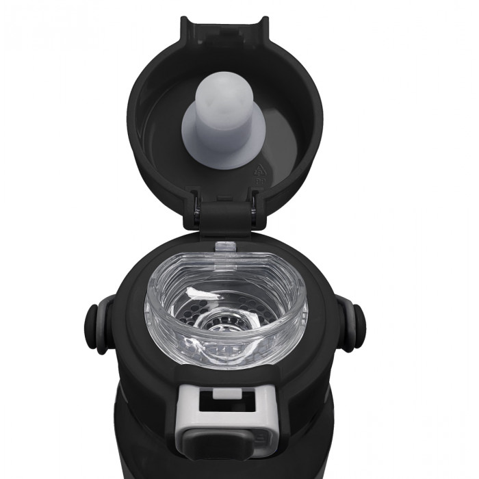 Пляшка для пиття 640 мл., матеріал пластик (BPA FREE), кришка з надійним відкидним механізмом, яка відкривається та блокується флеш-кнопкою, має силіконову ручку, яку зручно тримати або переносити пляшку, в середині кришки вмонтовано з'ємне ситечко з нержавіючої сталі. Группа нанесення шовкодрук, уф-друк. Розмір: висота 22 см., діаметр колби 7 см.