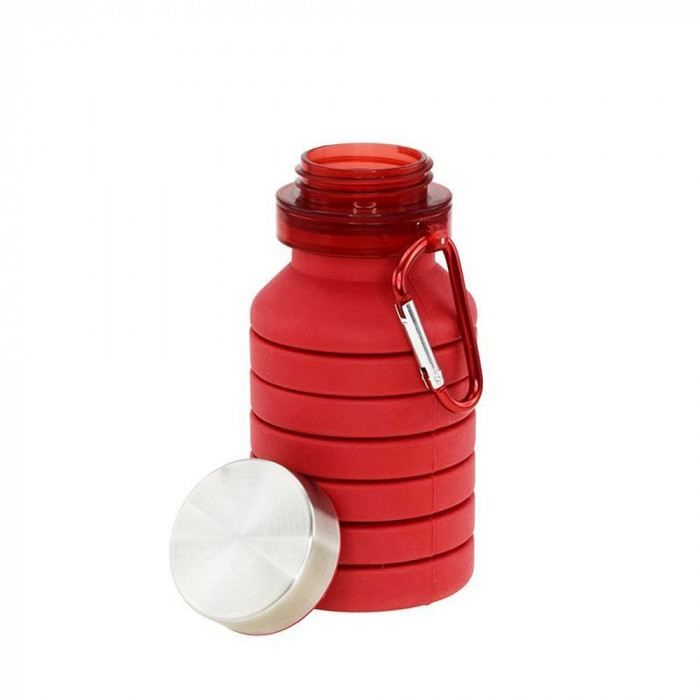 Складна пляшка для води Bergamo Pagoda виготовлена із силікону. Це м’який та легкий виріб, який можна використати, розклавши гармошкою, або у складеному вигляді. Комплектується металевим карабіном. Пляшку беруть з собою під час прогулянки, занять спортом, в подорожі. Вона призначена для холодних та гарячих напоїв. Об’єм пляшки – 550 мл. Виріб має компактні габарити. Розмір розкладеної пляшки – 24,8 х 7 см, складеної – 13,5 х 7 см, вага – 190 г. Складна пляшка має металеву пробку з різьбою, яка щільно закручується на горлечку і забезпечує герметичність. За допомогою карабіна пляшку можна прикріпити до рюкзака чи пояса.