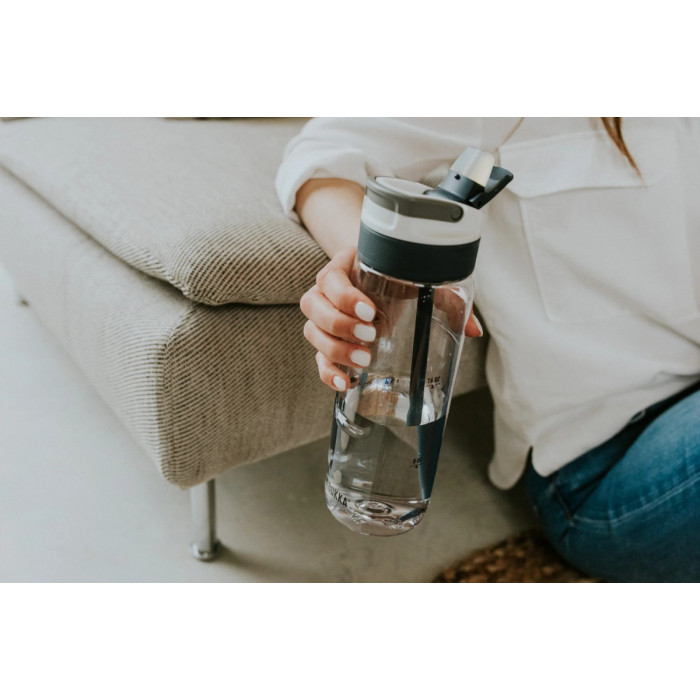 Тританова прозора пляшка для води Lagoon Clear Kambukka – це зручний багаторазовий посуд, який потрібен для підтримки водного балансу організму. Головні переваги пляшки – ергономічність, комфортне використання та оптимальний об’єм. Ергономічна форма забезпечує зручне користування, а герметична кришка дає можливість без проблем переносити виріб у сумці чи рюкзаку. Пляшка виготовлена з ударостійкого інноваційного тритану, , який на 50% складається з перероблених матеріалів. Це міцний та нешкідливий матеріал, схожий на скло, яке не б’ється. Має силіконовий складний носик, повністю захищений від бруду і пилу, та пластикову соломинку. На 100% герметична. Не зберігає запаху всередині пляшки. BPA-free. Об’єм пляшки – 750 мл, вага – 187 г. Компактний розмір та ручка забезпечують зручне перенесення. Пляшка миється в посудомийній машині. Тритановий посуд не боїться високих температур. Характеристики : Висота : 23,9 см Висота без кришки : 20,2 см Діаметр : 7,5 см