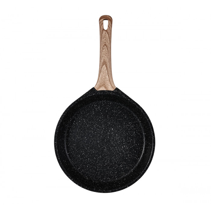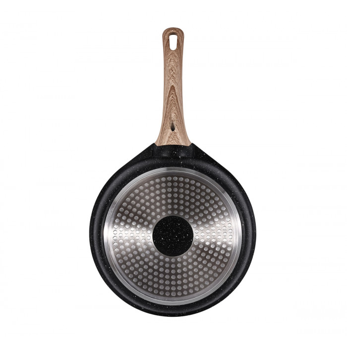 Сковорода виготовлена з литого алюмінію з антипригарним покриттям з керамічним вкрапленням. Корпус сковороди забезпечує рівномірний розподіл і тривале збереження тепла, що дозволяє готувати страви будь-якої складності. Ручка виготовлена з бакеліту із покриттям Soft Touch, що забезпечує максимальний комфорт при використанні. Підходить для всіх видів плит, включаючи індукційні. Ручка на сковорідці дуже добре підходить під лазерне гравіювання логотипу.