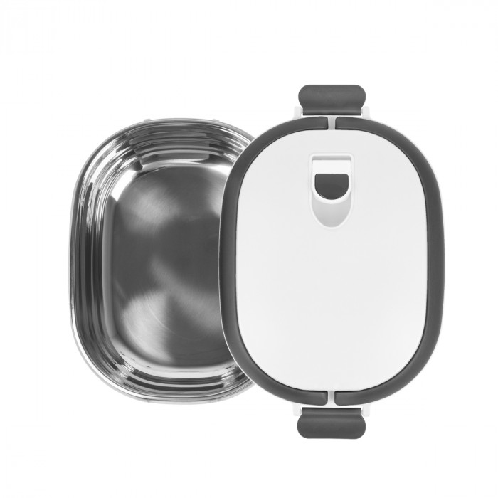Кришка геремтично закривається. Посудина з високоякісної нержавіючої сталі. Обьем 900 мл., розмір 200Х146Х83 мм. В подарунковій картонній коробці. Метод нанесення: шовкодрук, тамподрук, уф-друк.