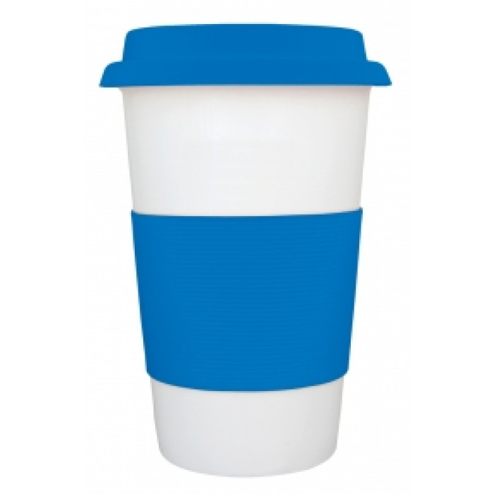 Керамическая чашка CREMA с яркой цветной силиконовой накладкой и крышкой. Благодаря крышке напиток долго остается теплым и не разбрызгивается при ходьбе или при езде в автомобиле. Силиконовая накладка предназначена для комфорта - чашка не скользит в руке и не позволяет обжечь руку от горячего напитка.