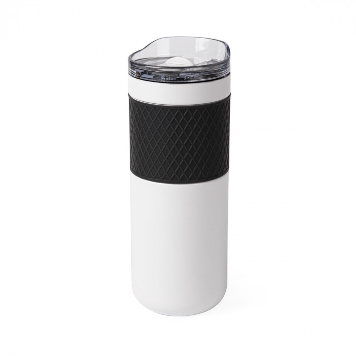 Термокружка з подвійною стінкою з нержавіючої сталі, з вакуумною кришкою та ергономічною силіконовою накладкою