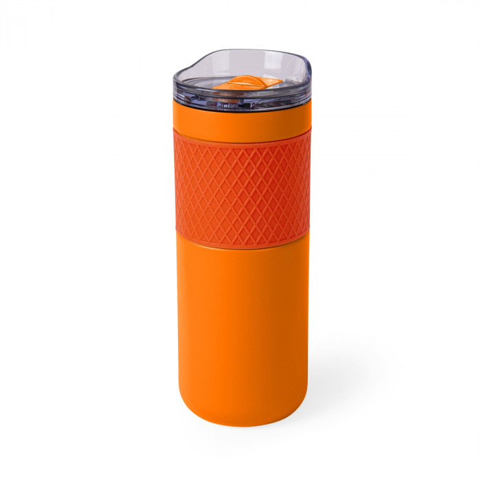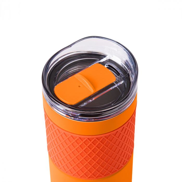 Термокружка з подвійною стінкою з нержавіючої сталі, з вакуумною кришкою та ергономічною силіконовою накладкою