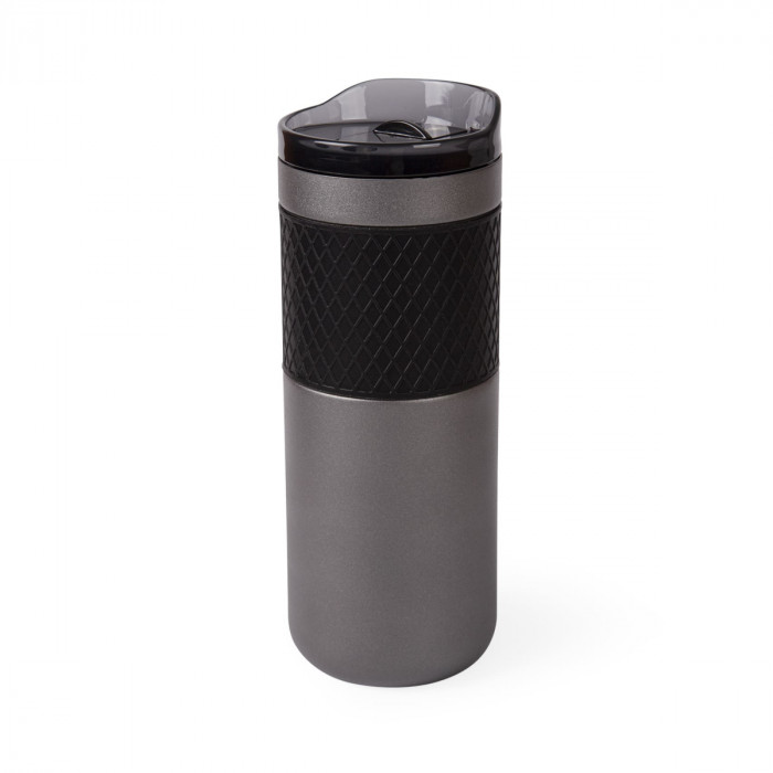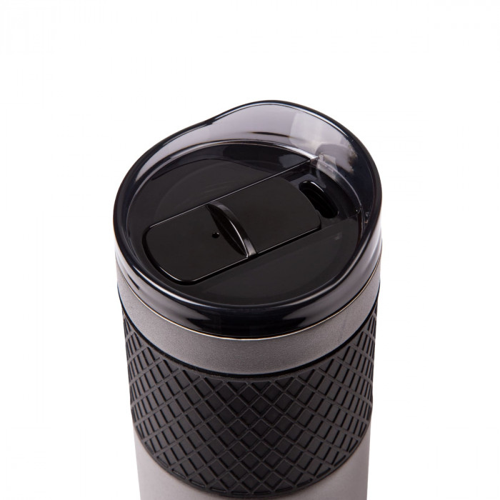 Термокружка з подвійною стінкою з нержавіючої сталі, з вакуумною кришкою та ергономічною силіконовою накладкою