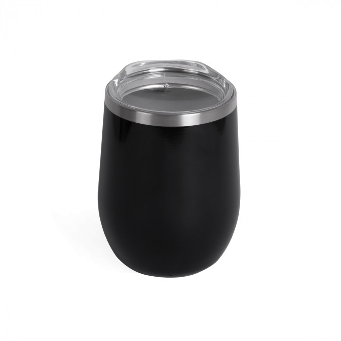 Металева термочашка з подвійними стійками з нержавіючої сталі ( глянцеве покриття емаль) і пластиковою прозорою кришкою з отвором. Кришку можна мити в посудомийній машині. Корпус мити тільки вручну, щоб не пошкодити кольорове покриття. Підтримує температуру протягом 6-ти годин