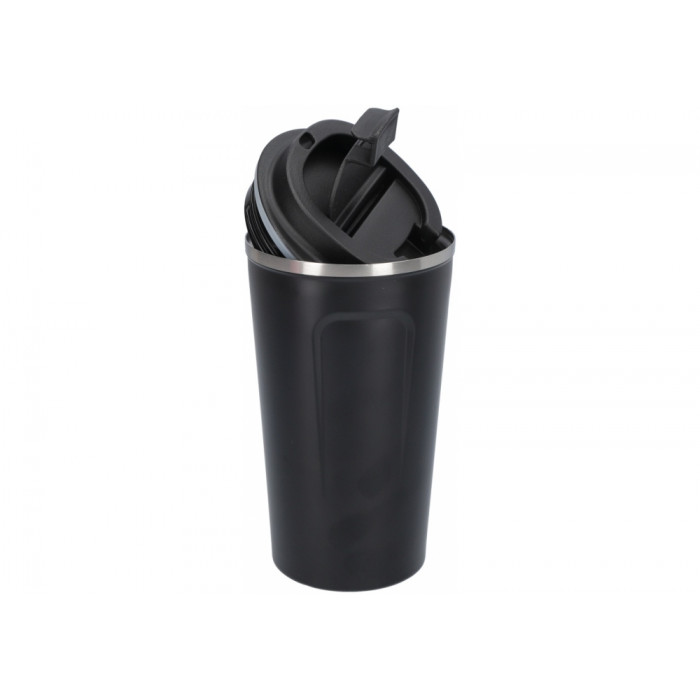 Ідеальна термокружка для кави з собою; однаково підходить як для гарячих так і холодних напоїв; подвійна високоякісна нержавіюча сталь; гумовий ущільнювач запобігає витіканню рідини та забезпечує тривале збереження температури напою; об'єм 500 мл; простота в очищенні та догляді.¶¶ Розміри: висота: 165 мм; діаметр 85 мм.¶¶ Збереження температури напою:¶початкова температура: 90 °C;¶через 1 годину: 80 °C;¶через 3 години: 60 °C;¶через 6 годин: 50 °C.