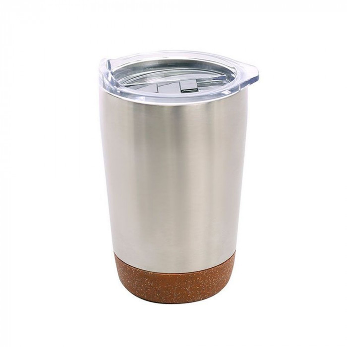 Термокружка MOROKKO виготовлена з нержавіючої сталі з подвійними стінками. Має внутрішню частину з вакуумною ізоляцією для збереження температури. Призначена для того, щоб напої залишалися гарячими / холодними протягом декількох годин. Включає прозору знімну кришку зі слайдер-клапаном. Декоративний низ зі штучної пробки служить додатковим захистом поверхні від дряпання. Характеристики: Об’єм: 350 мл Висота: 13,5 см Діаметр: 6,5 см – 9,3 см Вага: 239 г