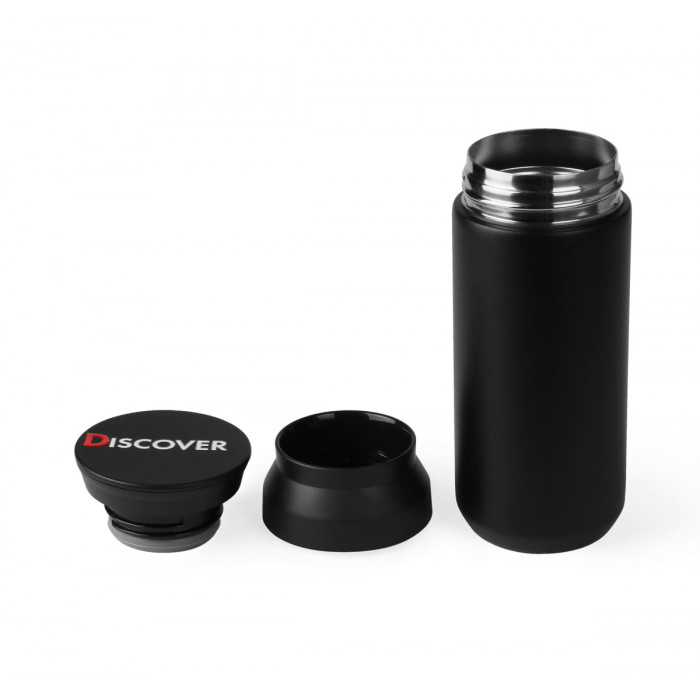 Вакуумна термочашка з нержавіючої сталі, Покриття - матова емаль. Підтримує температуру протягом 8-ми годин. Герметична пластикова кришка має вбудований фільтр для чайних листочків, фруктів чи льоду а також легко розбирається для митья. Об'єм 350 мл., Висота 17 см., діаметр 6,8 см. Метод нанесення гравіювання, уф-друк, тамподрук на верхній частині кришки.
