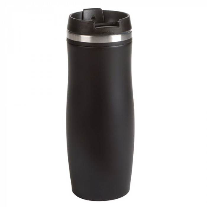 Термокружка с двойными стенками DARK CREMA внутри и снаружи из нержавеющей стали, съемная пластиковая крышка с открывающимся отверстием для питья, цветное резиновое кольцо вокруг отверстия и прорезиненная нижняя часть для улучшения адгезии, объем 400 мл.