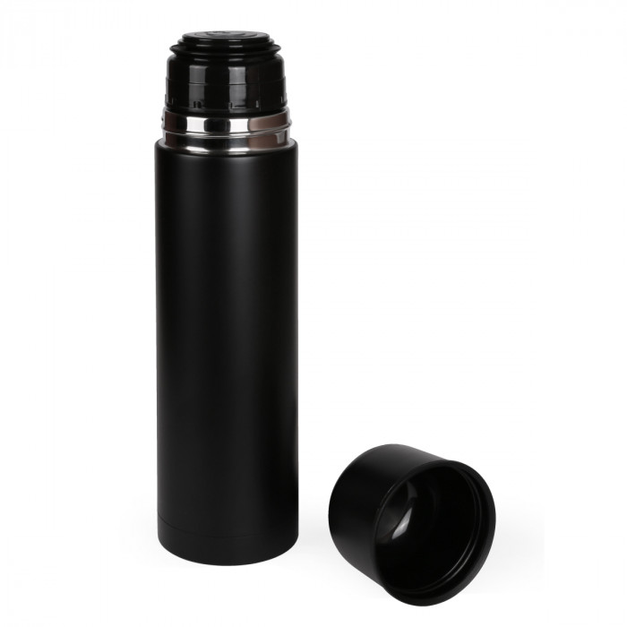 Термос з нержавіючої сталі, обєм 750мл, кришка з герметичним клапаном. Вкрита кольоровим матовим софт-тач покриттям. Підтримує температуру до 24 годин. Упаковка індивідуальна чорна коробка та полієтиленовий пакет