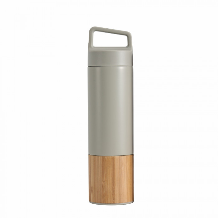 Для виготовлення зовнішнього шару термоса використали нержавіючу сталь 201 та бамбук. Метал ефектно поєднується з деревиною.
