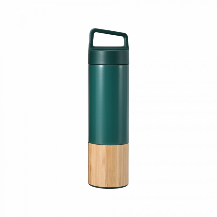 Малахітовий термос з ручкою на кришці Macao від бренду Line Art призначений для гарячих і холодних напоїв. Він зберігає напій гарячим до 12 годин, холодним – до 24 годин. Нижня частина виробу декорована бамбуком.