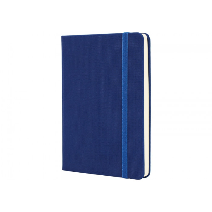 Деловая записная книжка формата А6. твердая, материал – искусственная кожа, цвет – синий. Внутренний блок: линия, цвет бумаги – кремовый, количество листов – 128 (256 страниц), плотность бумаги – 70 г/м2. Обложка с резинкой. С карманом внутри обложки. Изготовлен в Украине.