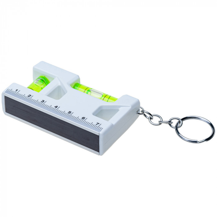 Брелок-рулетка в корпусе из переработанного ABS-пластика. В корпусе расположены две капсулы (горизонтальная и вертикальная). Брелок оснащен кольцом для ключей.